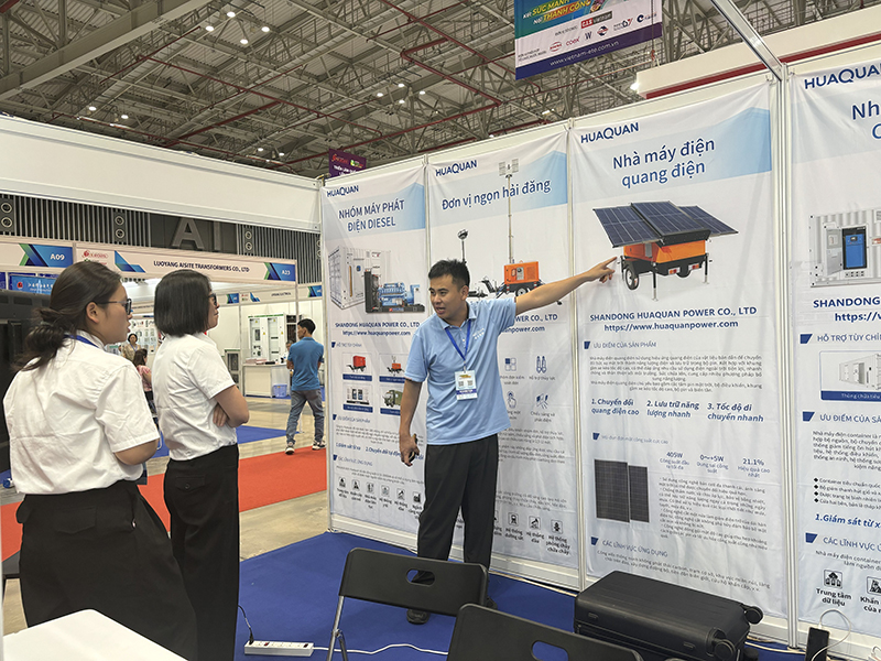 華全電力攜5大電力產品(50千瓦開架式發電機組、50千瓦靜音式發電機組、便攜式發電機、燈塔發電機、光伏電站),登陸越南第18屆國際電力設備與技術展覽會(ETE 2025),為制造業、基建、民生領域提供穩定電力保障, 越南海外倉72h極速交付。